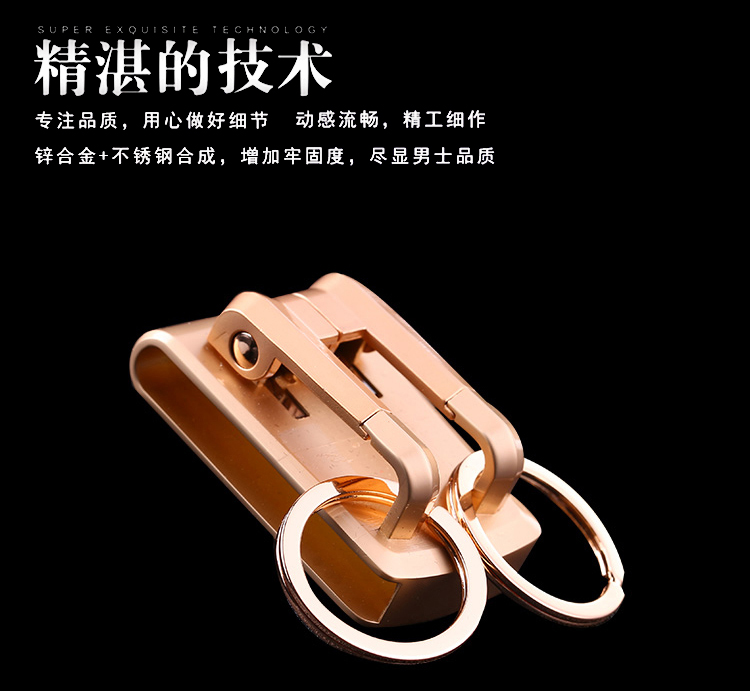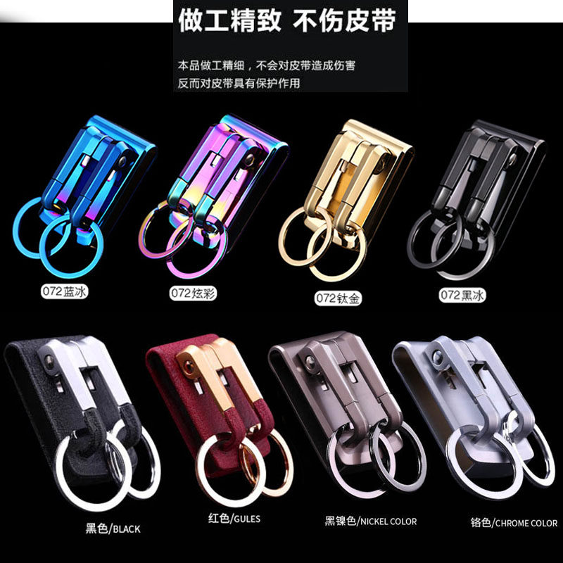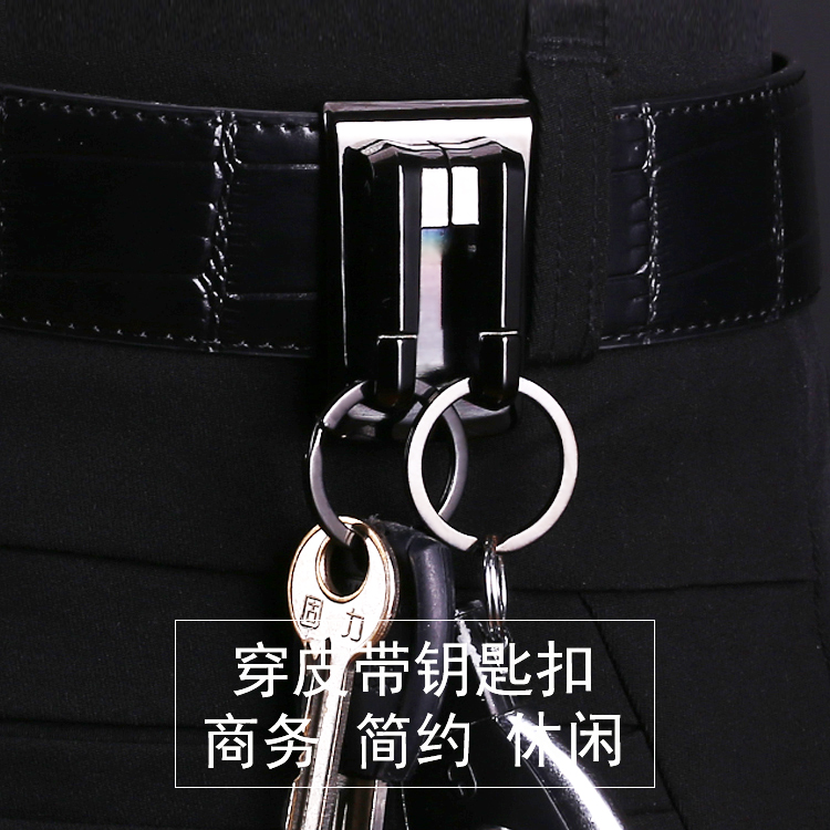 中邦钥匙扣男士腰挂不锈钢穿皮带锁匙扣高档金属双扣挂件创意礼品