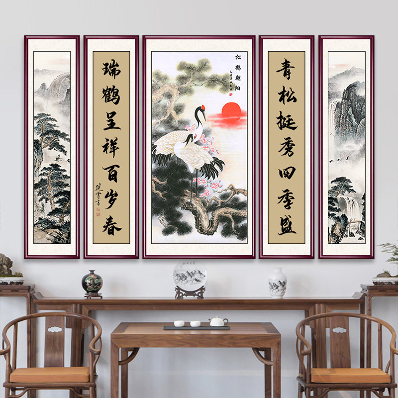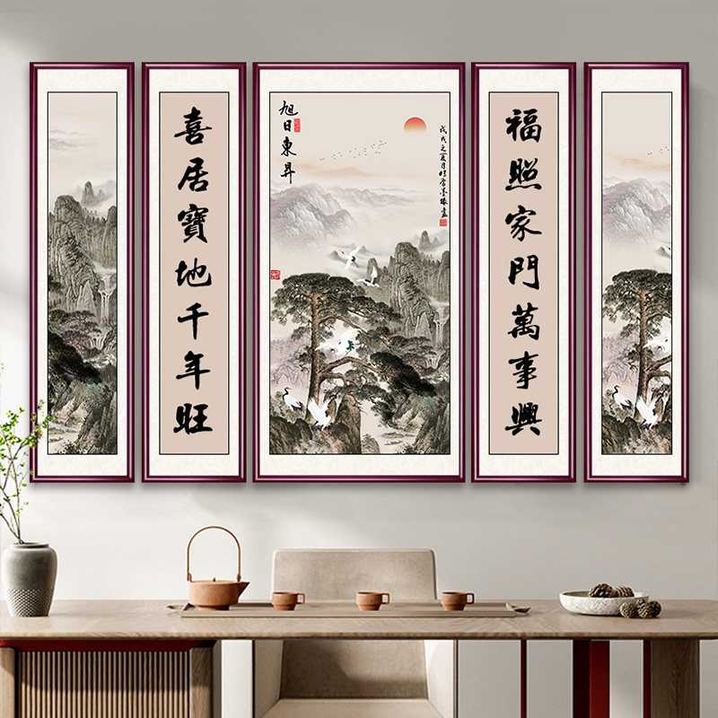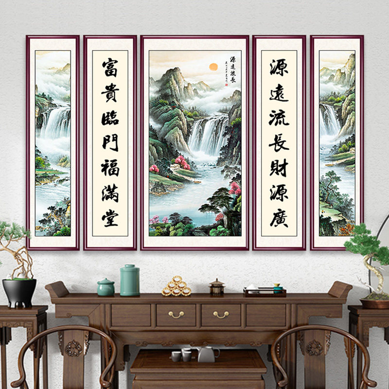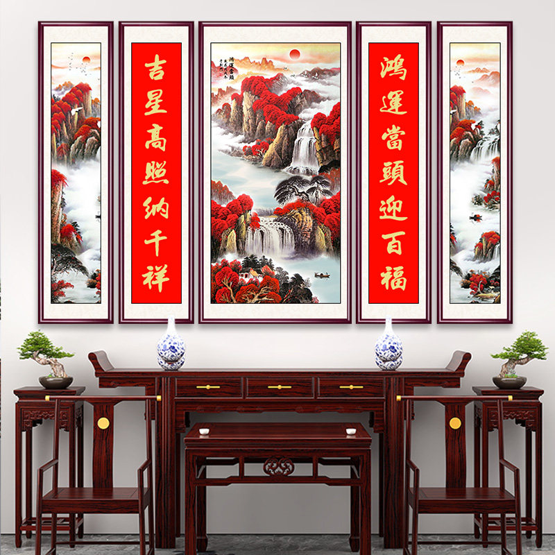 新款中堂画客厅挂画农村堂屋大气五联大厅大堂装饰山水画字画高端