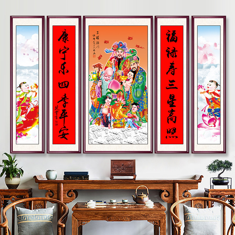 新款中堂画客厅挂画农村堂屋大气五联大厅大…