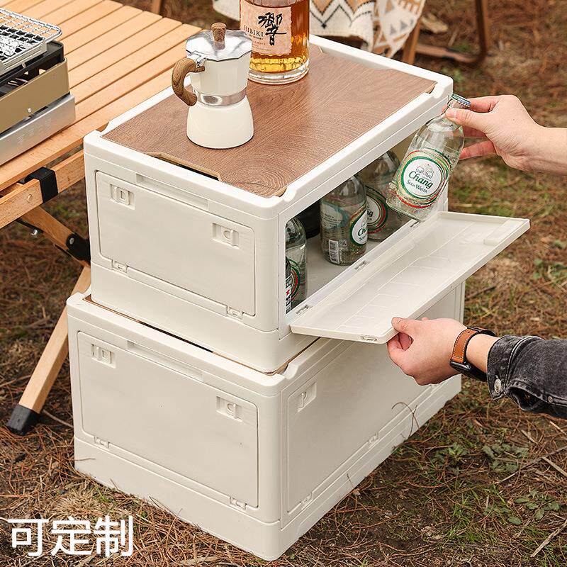 户外露营收纳箱侧开门野营木盖折叠箱收纳盒家用车载后备箱储物箱