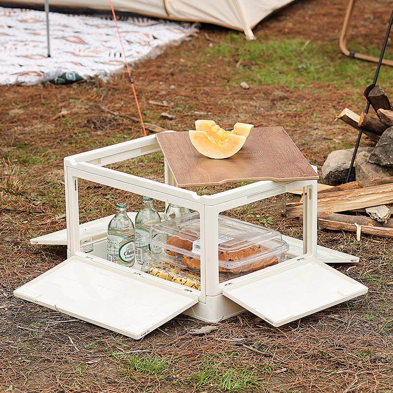 户外露营收纳箱侧开门野营木盖折叠箱收纳盒…