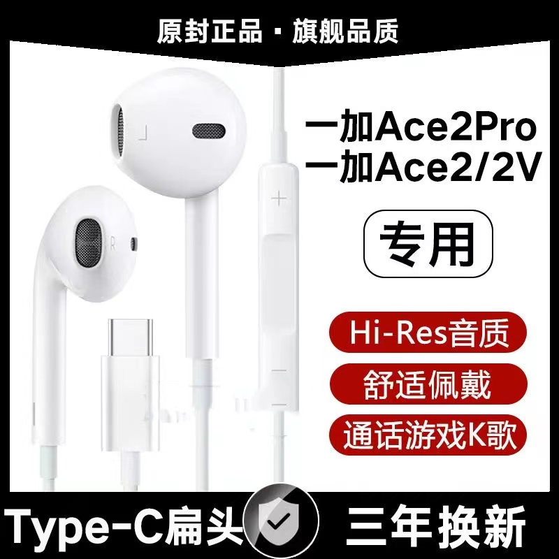 适用一加Ace2Pro有线耳机原装Ace2专用ace2v带麦游戏K歌typec原配