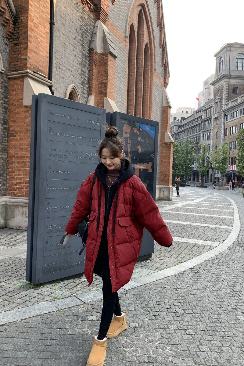 淘宝韩红原创女装,胖mm卡其色羽绒服外套女