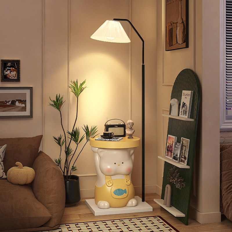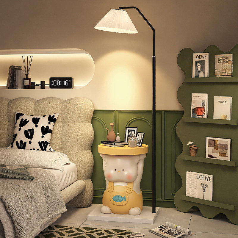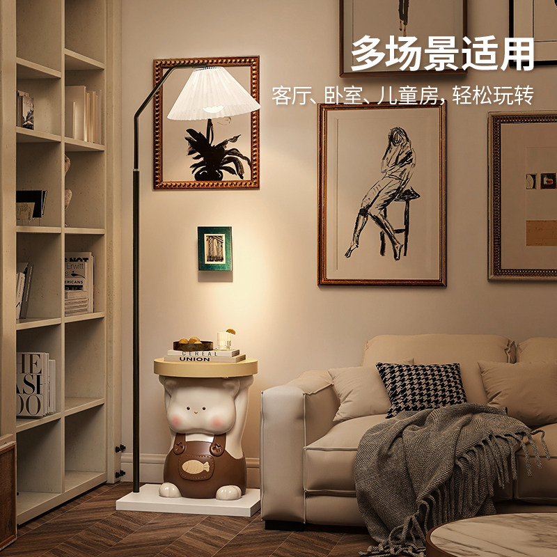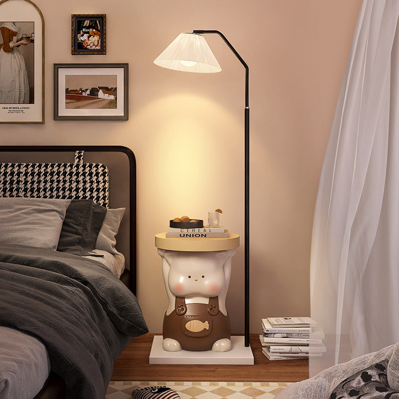 小猫落地灯床头柜一体卧室立式台灯客厅沙发旁儿童房奶油风氛围灯