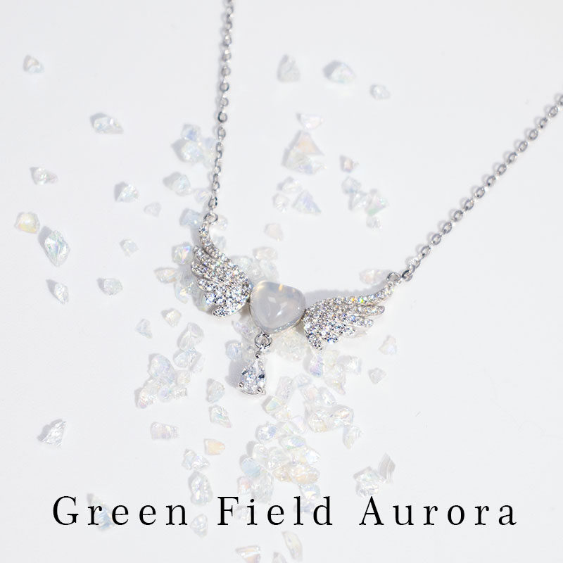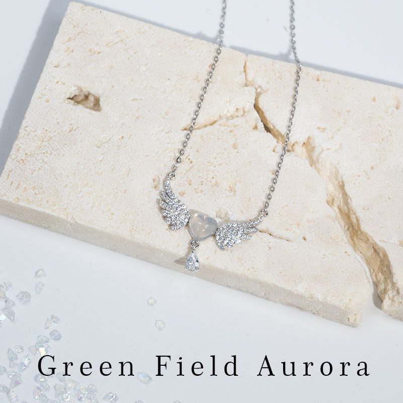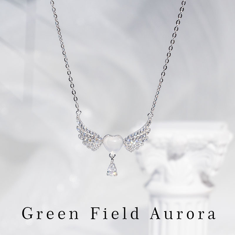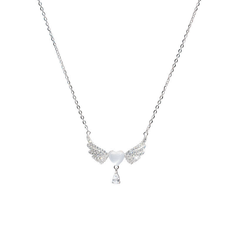 淘宝绿野极光饰品,天使之翼项链S925纯银白玉髓吊坠天使翅膀爱心锁骨链小众设计感女
