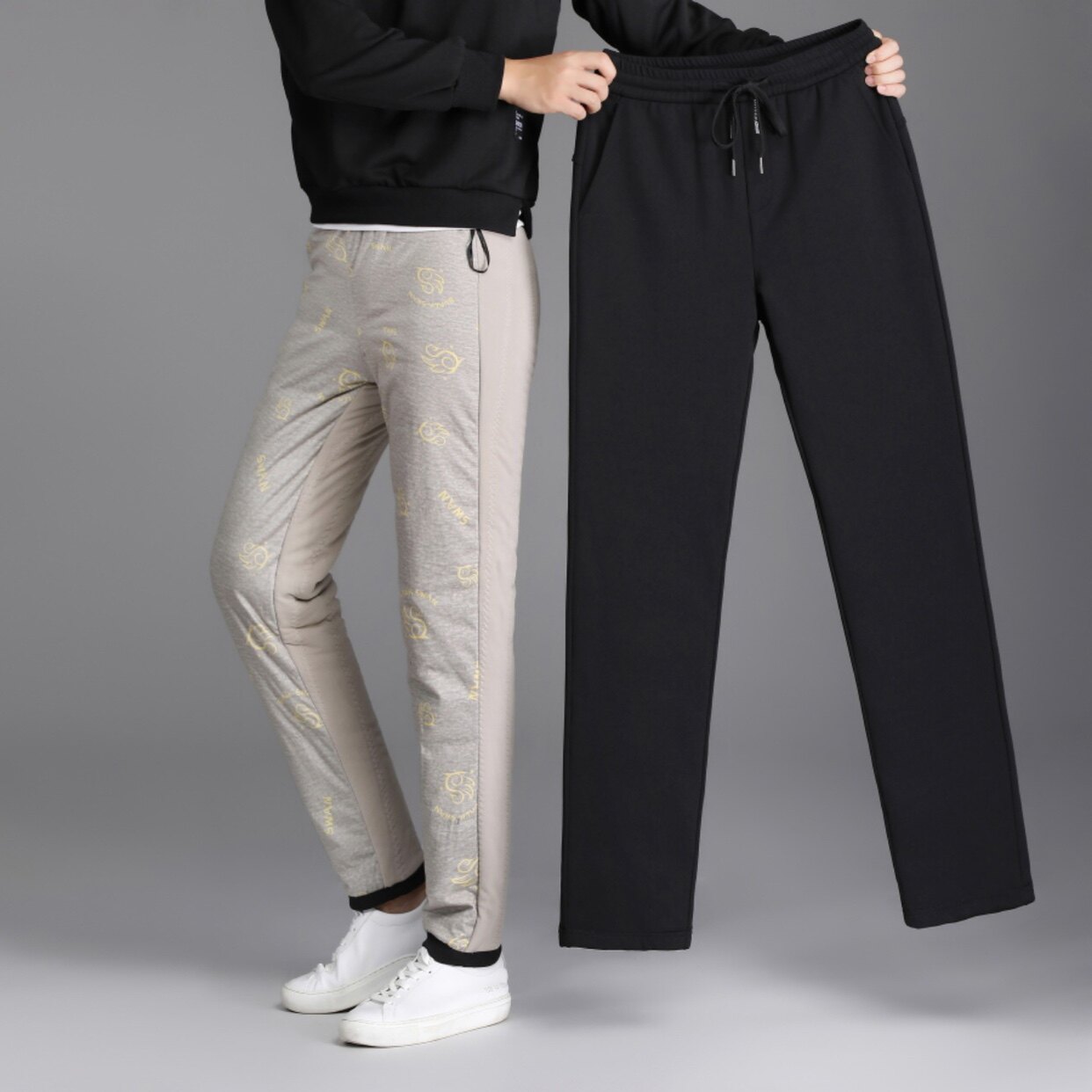 淘宝波哥高端轻奢品牌女装,2023新款男士鹅绒裤冬季商务休闲黑色羽绒裤防风加厚保暖三防面料