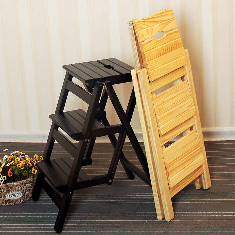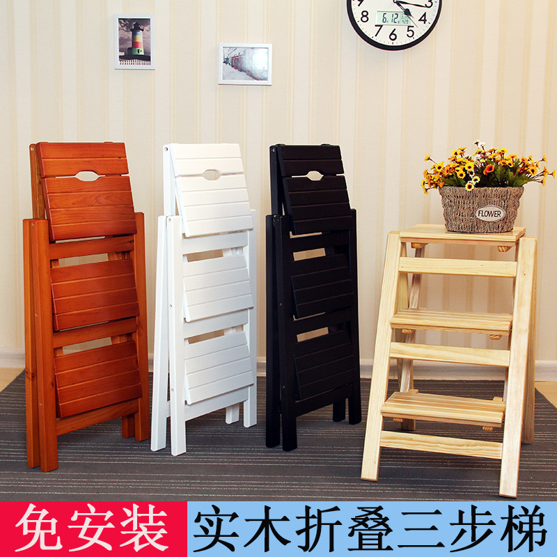 淘宝裕丰达商贸,实木家用梯子多功能折叠梯架加厚室内登高三步小梯子创意楼梯椅子