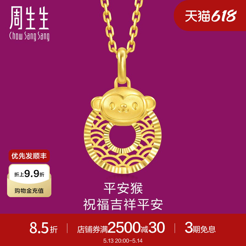 天猫周生生官方旗舰店,520周生生足金生生有礼本命年十二生肖猴平安扣吊坠挂坠94417P