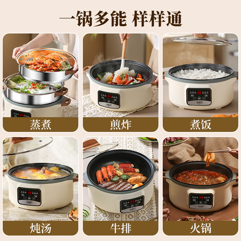 德国电炸锅家用多功能料理锅电炒锅宿舍电煮锅电火锅不粘锅电蒸锅