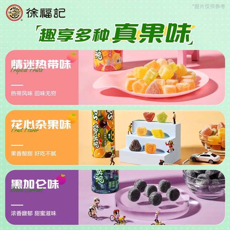 徐福记雀巢趣满果黑加仑水果软糖儿童qq糖…