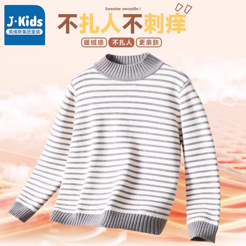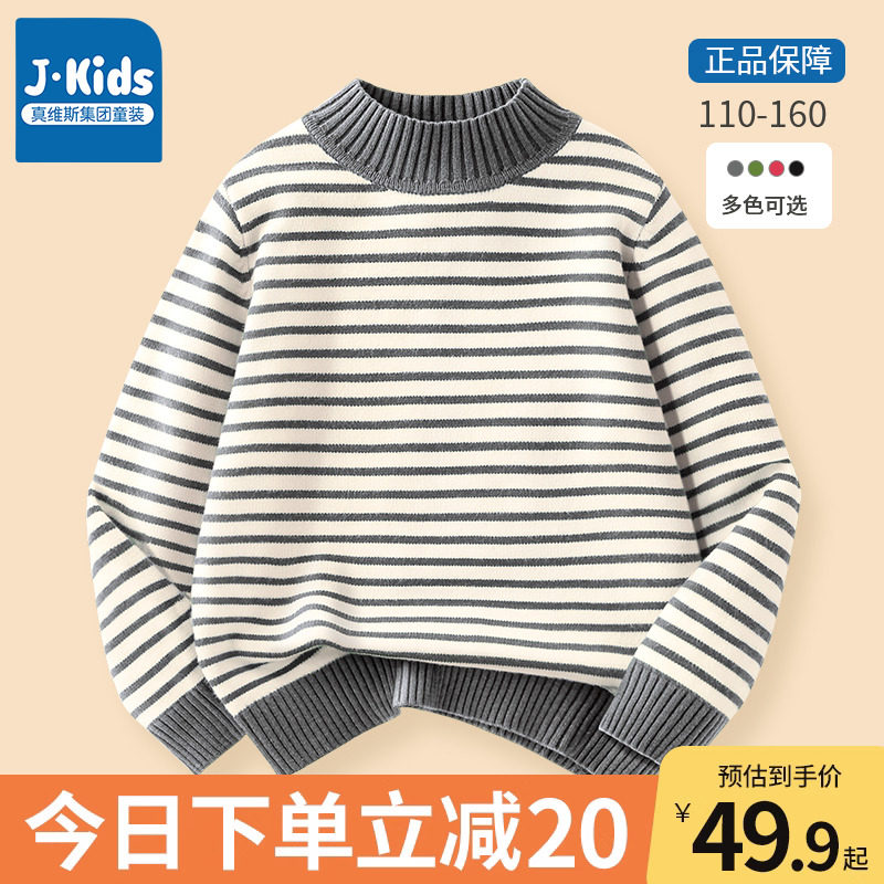 真维斯集团男童毛衣秋冬款2023新款儿童条纹毛线衣小男孩时髦上衣