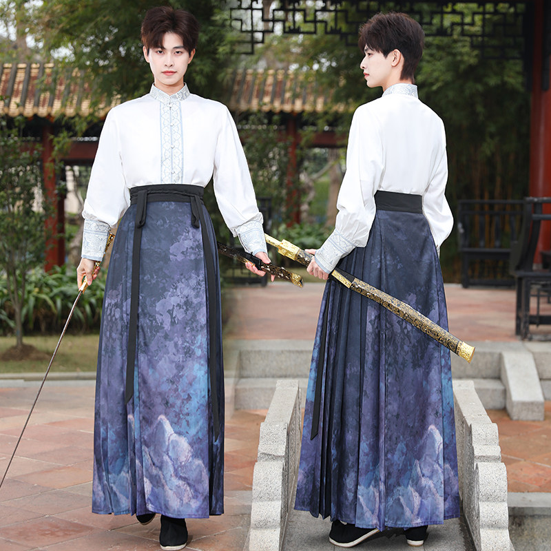 天猫feichangke非裳客旗舰店,男士汉服马面裙蓝色国风上衣套装