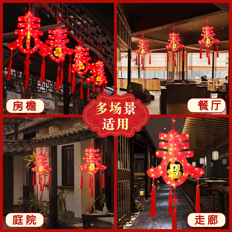 2024新年春节挂件发光立体春字灯笼中国红迎新福字过年喜庆挂饰