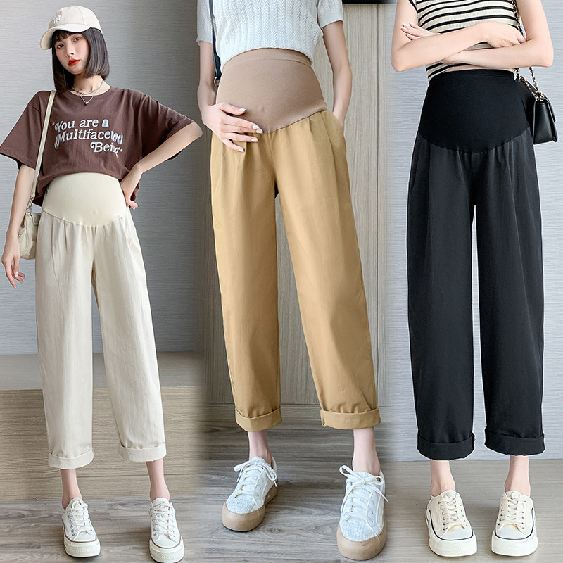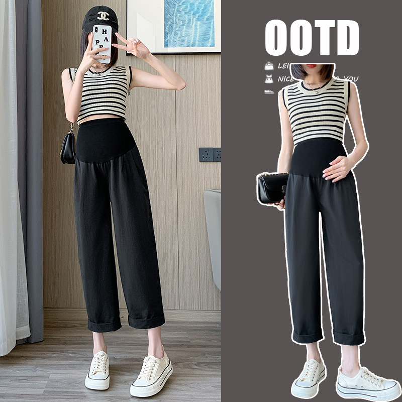 淘宝韩国欧巴孕妇装,孕妇老爹裤2023新款孕妇裤子夏季外穿宽松休闲九分裤夏装萝卜裤夏