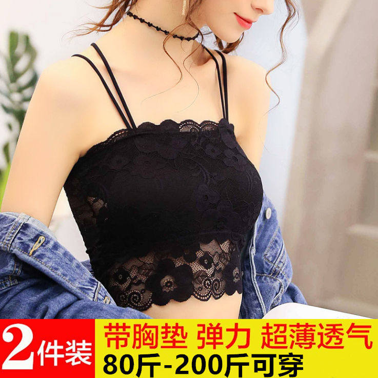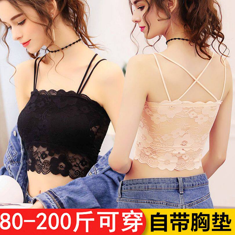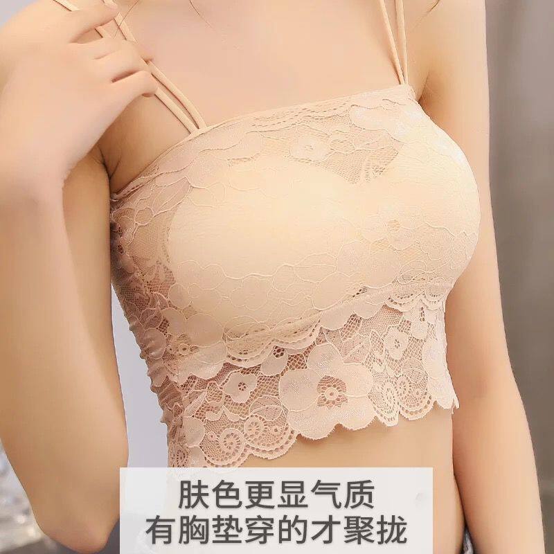 性感蕾丝美背裹胸内衣女带胸垫防走光打底美背抹胸文胸吊带小背心