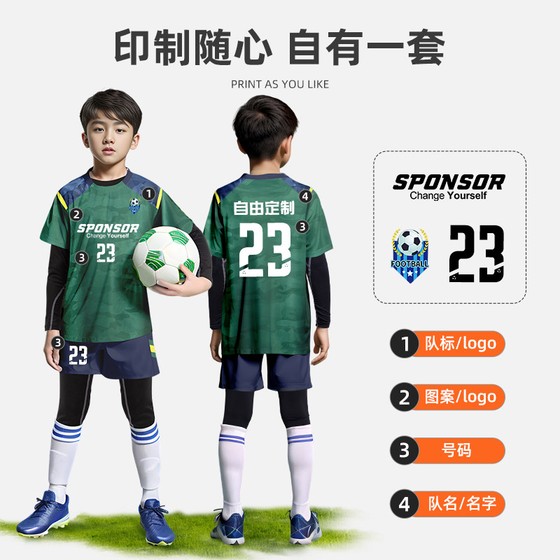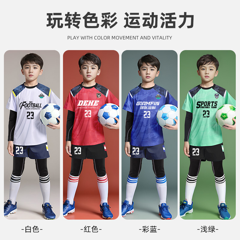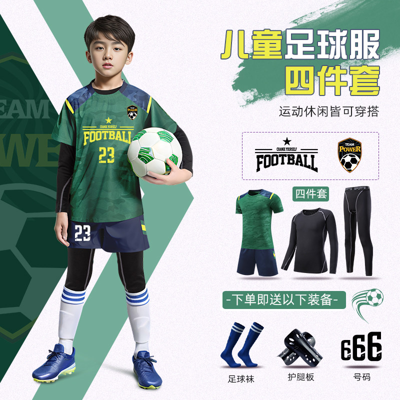 儿童足球服套装男女童秋冬运动训练服装小学生比赛四件套定制球衣