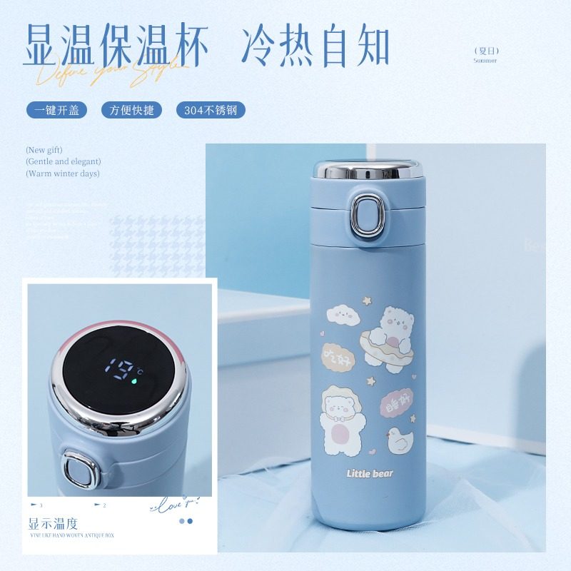 ins小熊智能保温杯可爱女生高颜值学生卡通儿童生日礼物款暖水杯