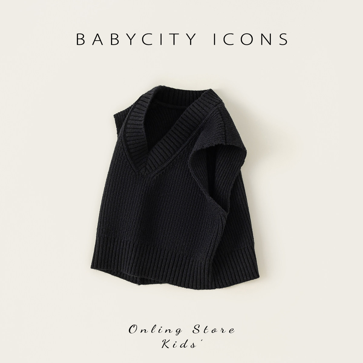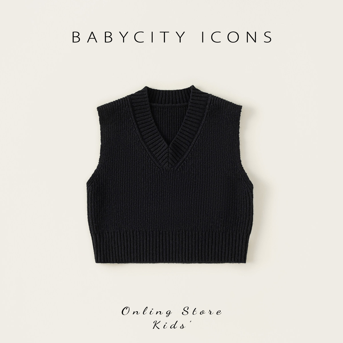 贝贝城纯色V领毛衣马甲