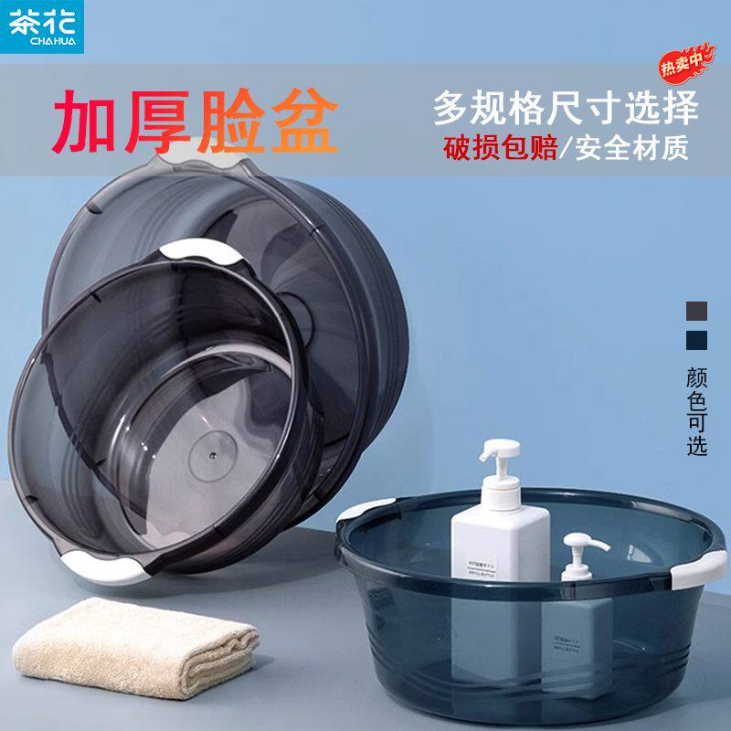 茶花脸盆学生宿舍用加厚塑料婴儿透明盆子家用大号洗衣盆透明圆形