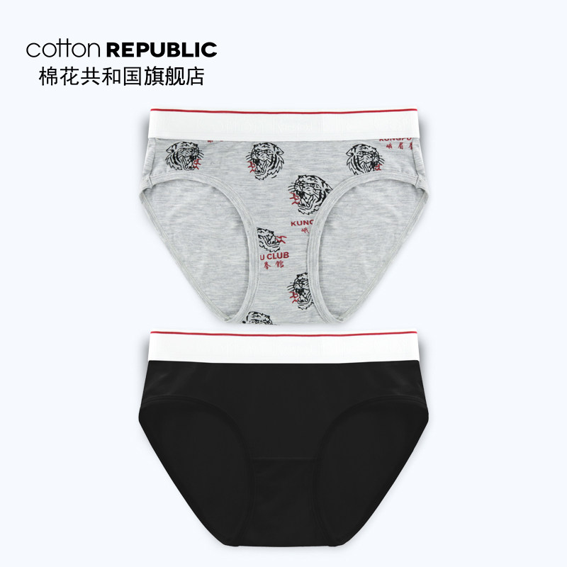 天猫棉花共和国旗舰店,情侣款商场同款女生莫代尔2条内裤,宽腰边莫代尔印花2条装