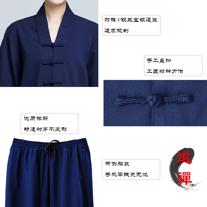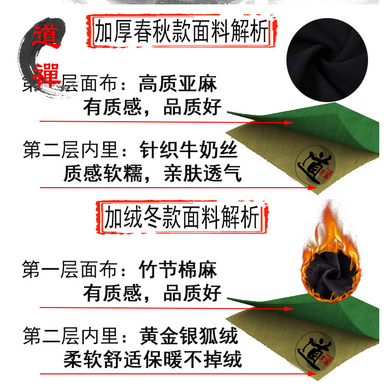 淘宝武当道禅传统服饰,武当春秋款亚麻禅修服V领加绒