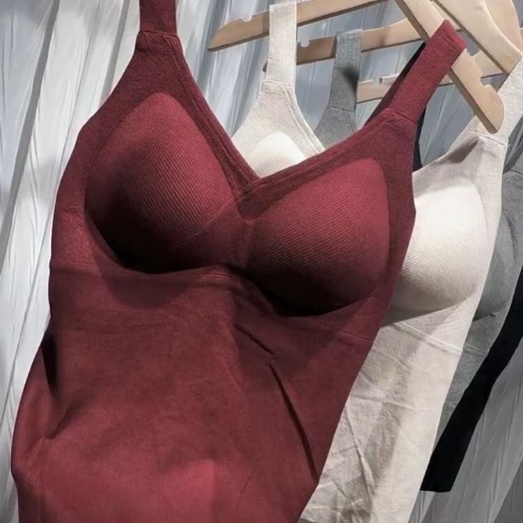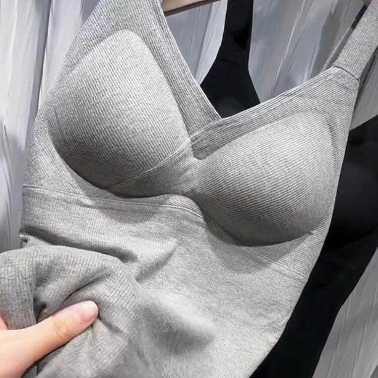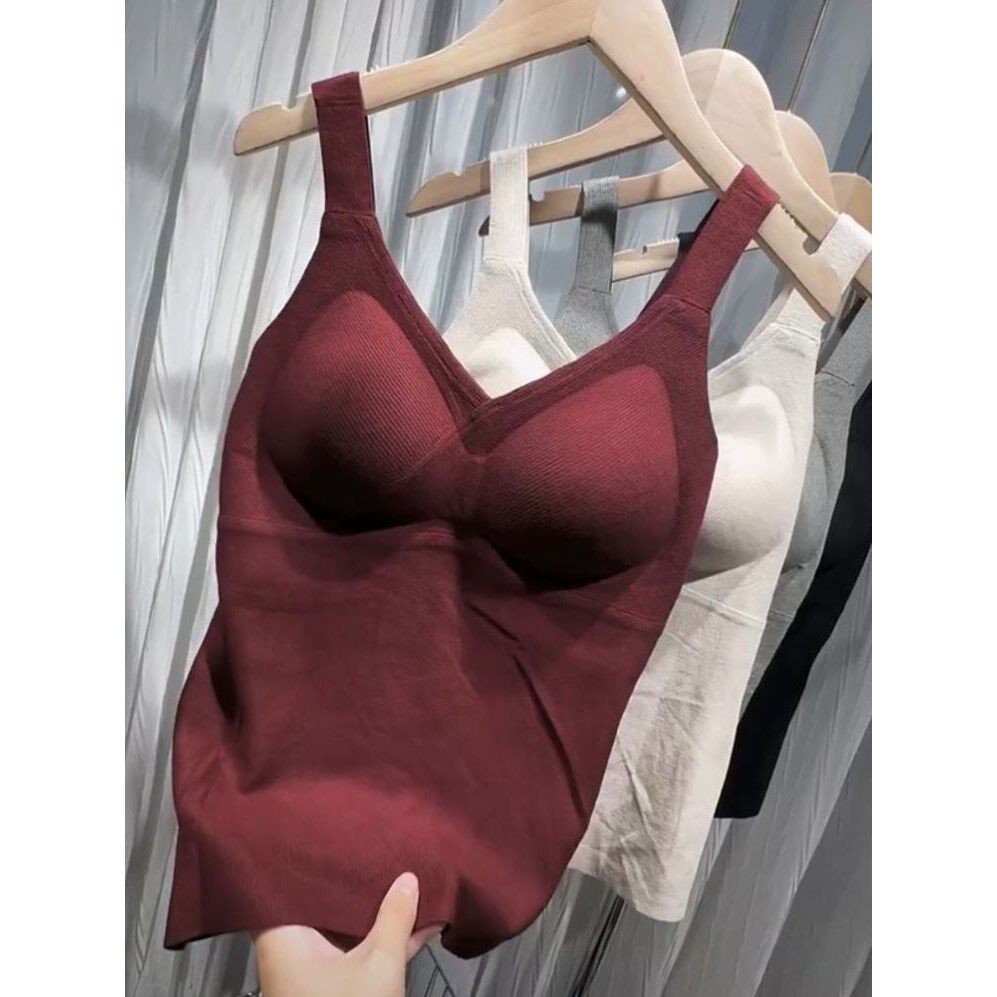 淘宝小鱼家美妆旗店,2024秋冬新款时尚带胸垫磨毛加绒吊带美背女百搭V领内搭保暖背心