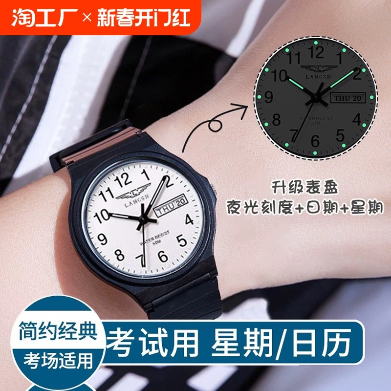 天猫天天特卖工厂店,考试专用手表男女学生初高中青少年公务员考试中考电子手表石英表