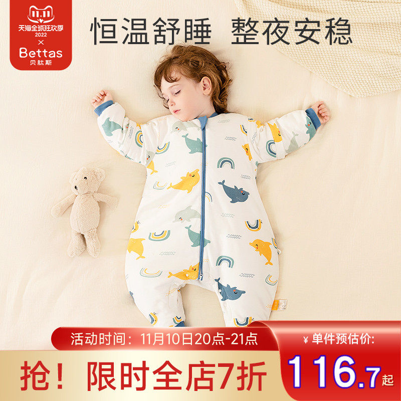 天猫贝肽斯旗舰店,【暖姜x天竹】宝宝分腿睡袋秋冬,生物基恒温,暖姜升温6.8°C舒适好睡