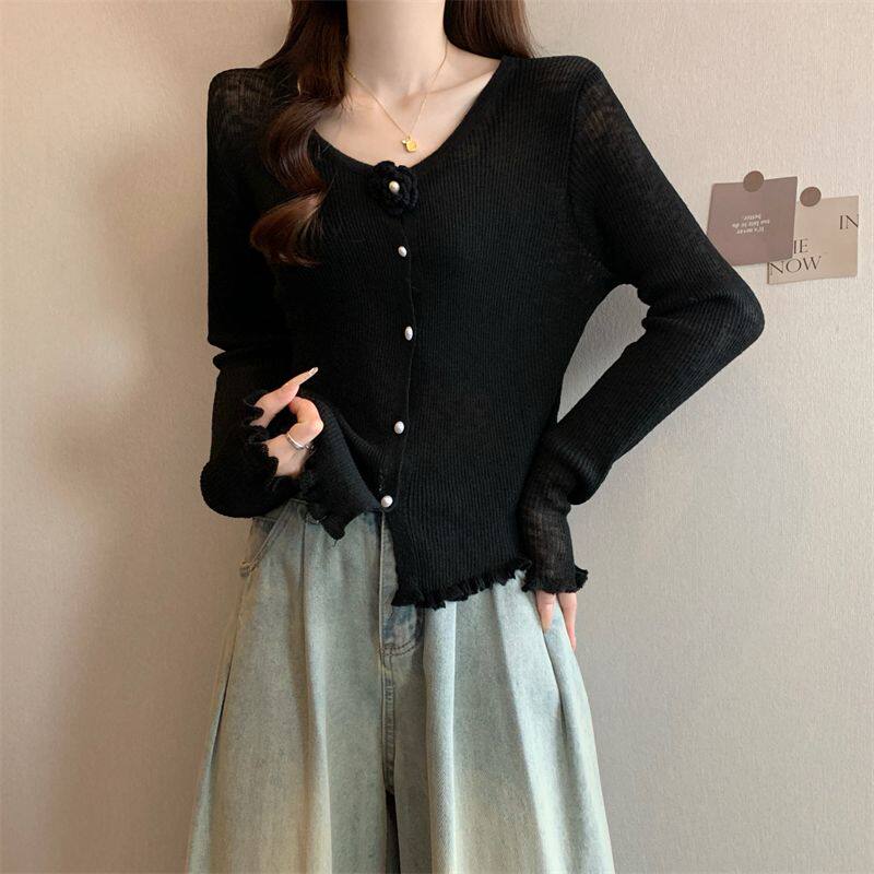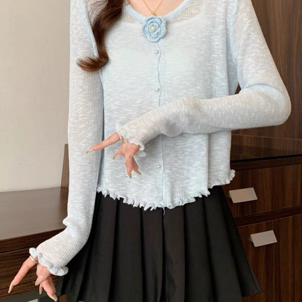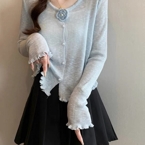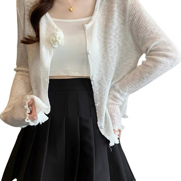 立体花朵木耳边冰丝薄款针织开衫女装夏季大码胖mm外搭防晒衫上衣