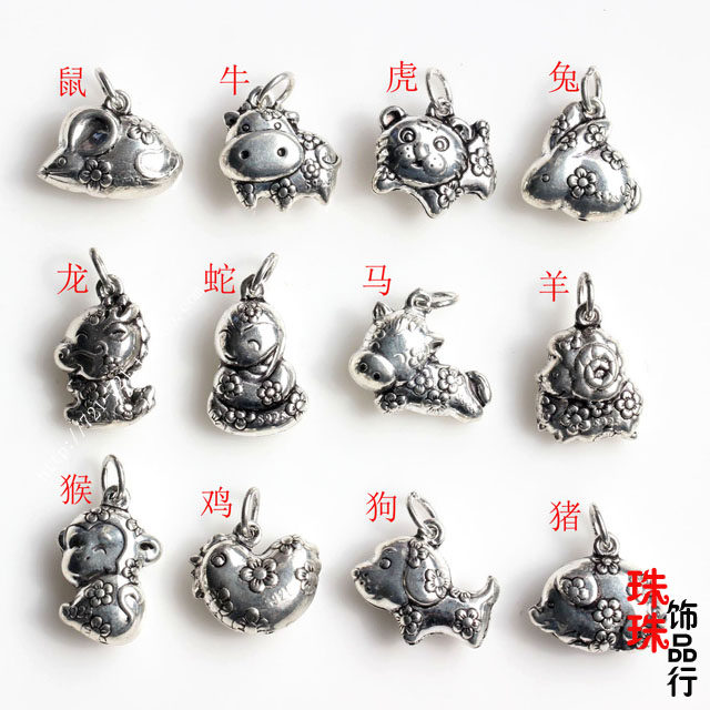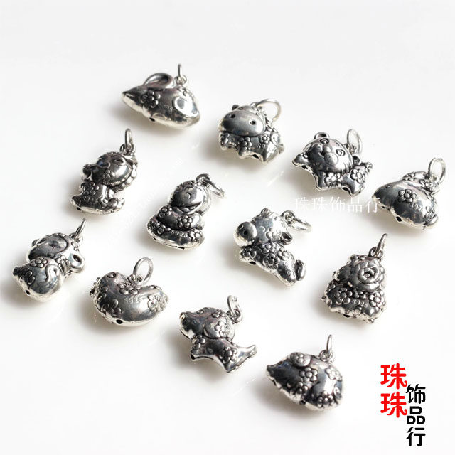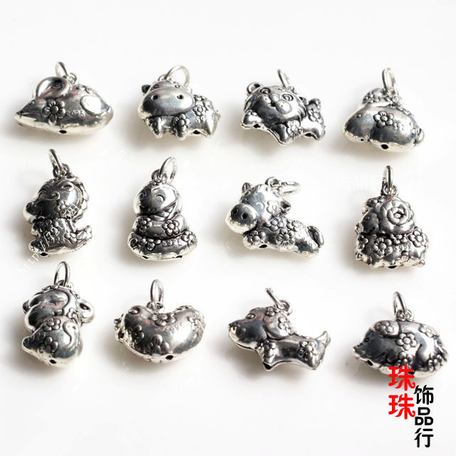 DIY首饰品编制材料925纯银泰银十二生肖属相吊坠本命年银吊坠配件