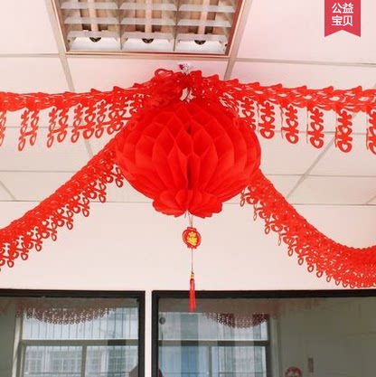 淘宝秋香五金百货批发,婚房客厅布置装饰拉花喜字福字拉花结婚灯笼彩旗婚庆节日喜庆用品