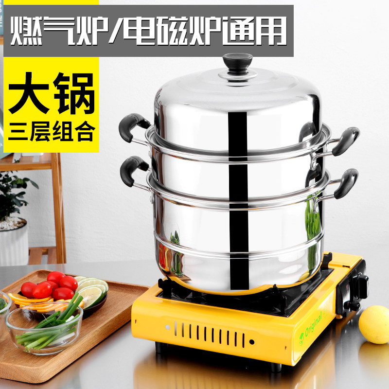 蒸锅不锈钢三层加厚蒸笼3层蒸格1层二2层汤锅双层家用电磁炉锅具