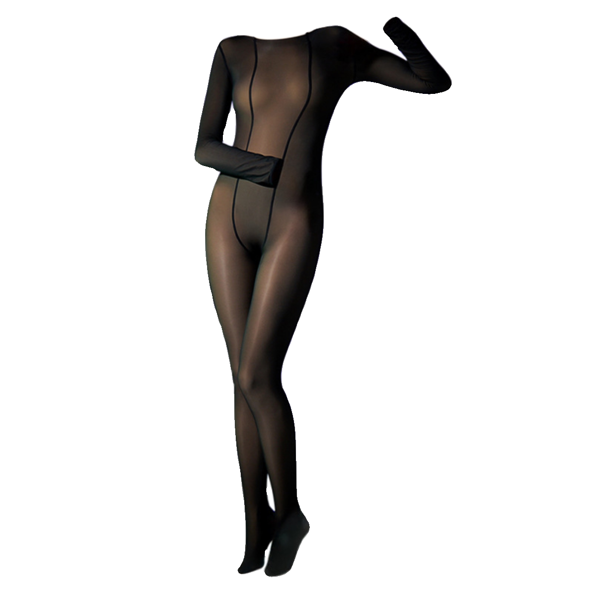 加绒假透肉连身袜女黑丝透肤连体袜水光全身袜秋冬打底保暖连体衣