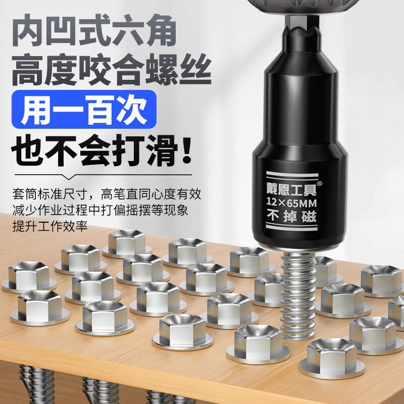 强磁套筒自攻螺丝内六角钻尾螺丝风批电钻电…