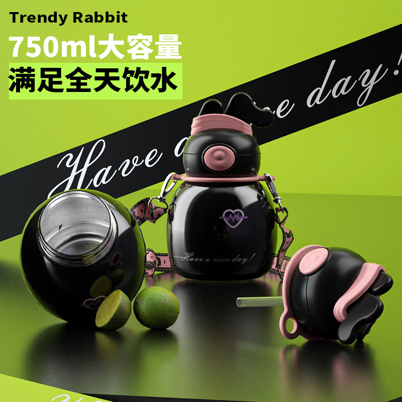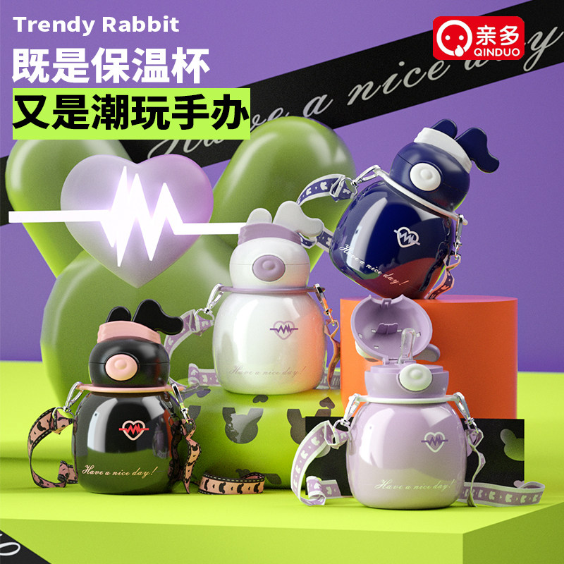 亲多学生保温杯316不锈钢高颜值可爱女生吸管杯儿童宝宝水壶便携