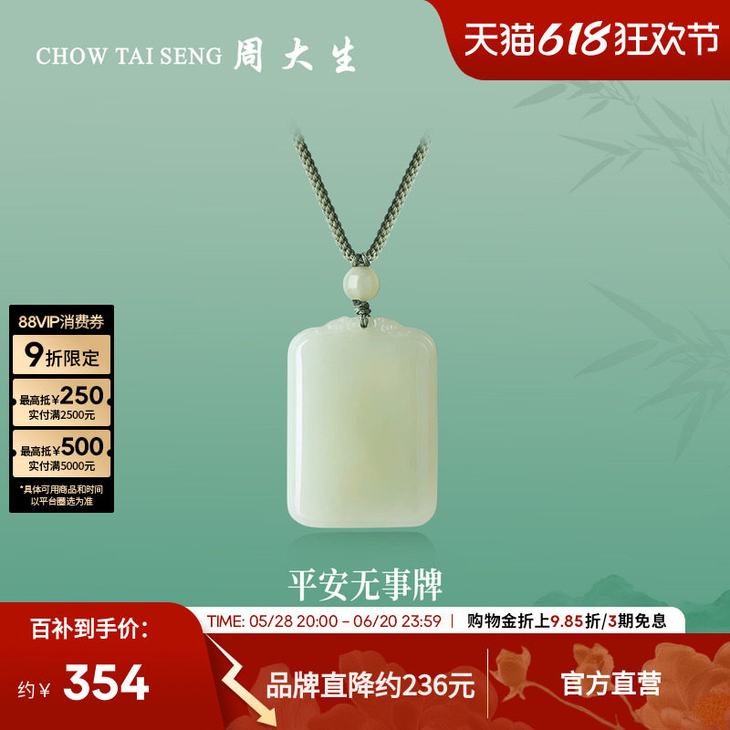 天猫周大生旗舰店,周大生和田玉吊坠平安无事牌玉石情侣编绳挂坠项链生日礼物送女友