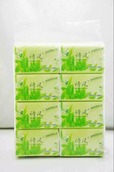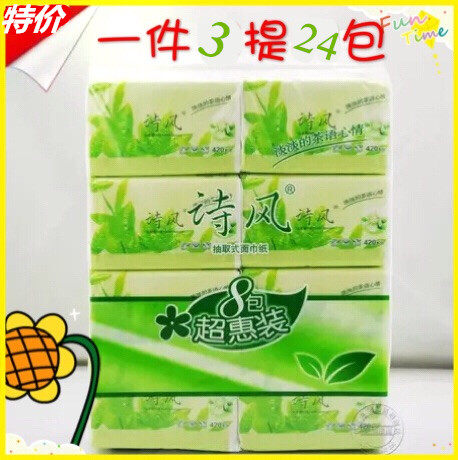 诗风绿茶纯木浆纸抽纸巾餐巾纸面巾纸420张整箱80包
