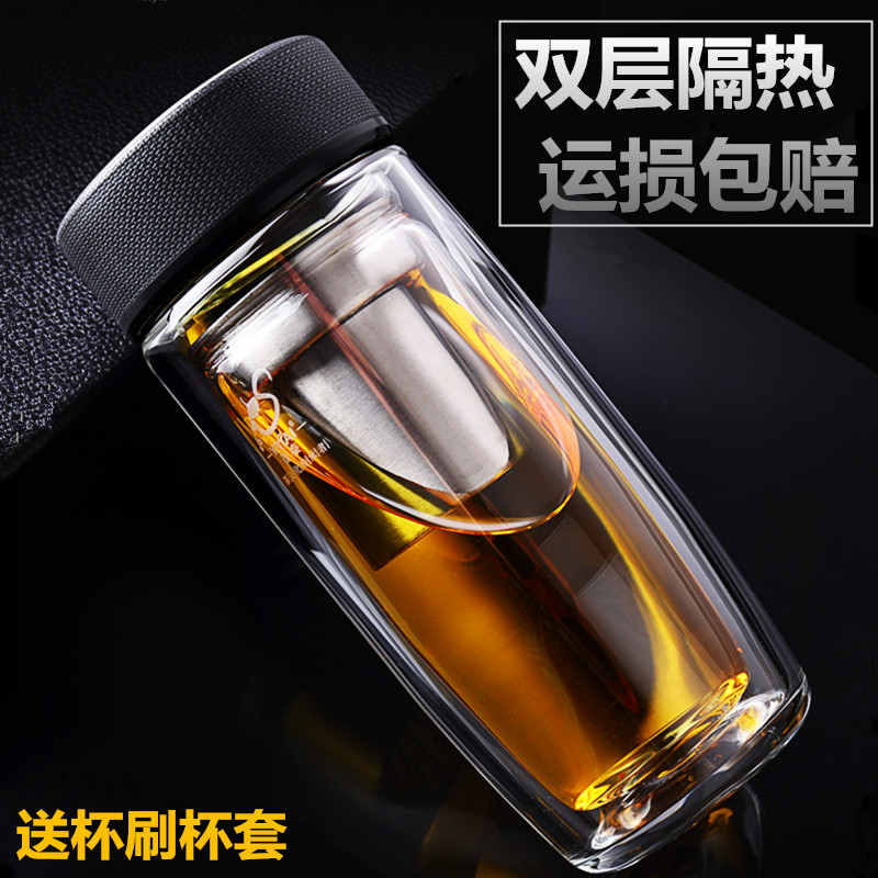 淘宝超人的小店8,亚泰双层玻璃杯加厚防烫耐热大容量男女办公便携水杯过滤泡茶杯子