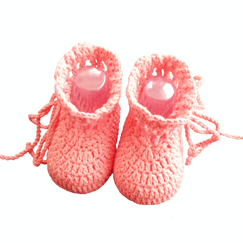淘宝一六优选,成品手工编织男女宝宝纯色钩针系带婴儿毛线鞋子软底袜鞋春秋新品