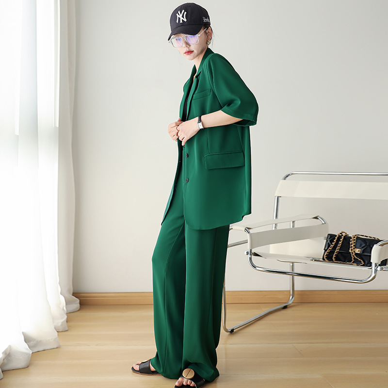 2024夏季新款大码女装薄款短袖西装套装胖mm宽松西服阔腿裤两件套