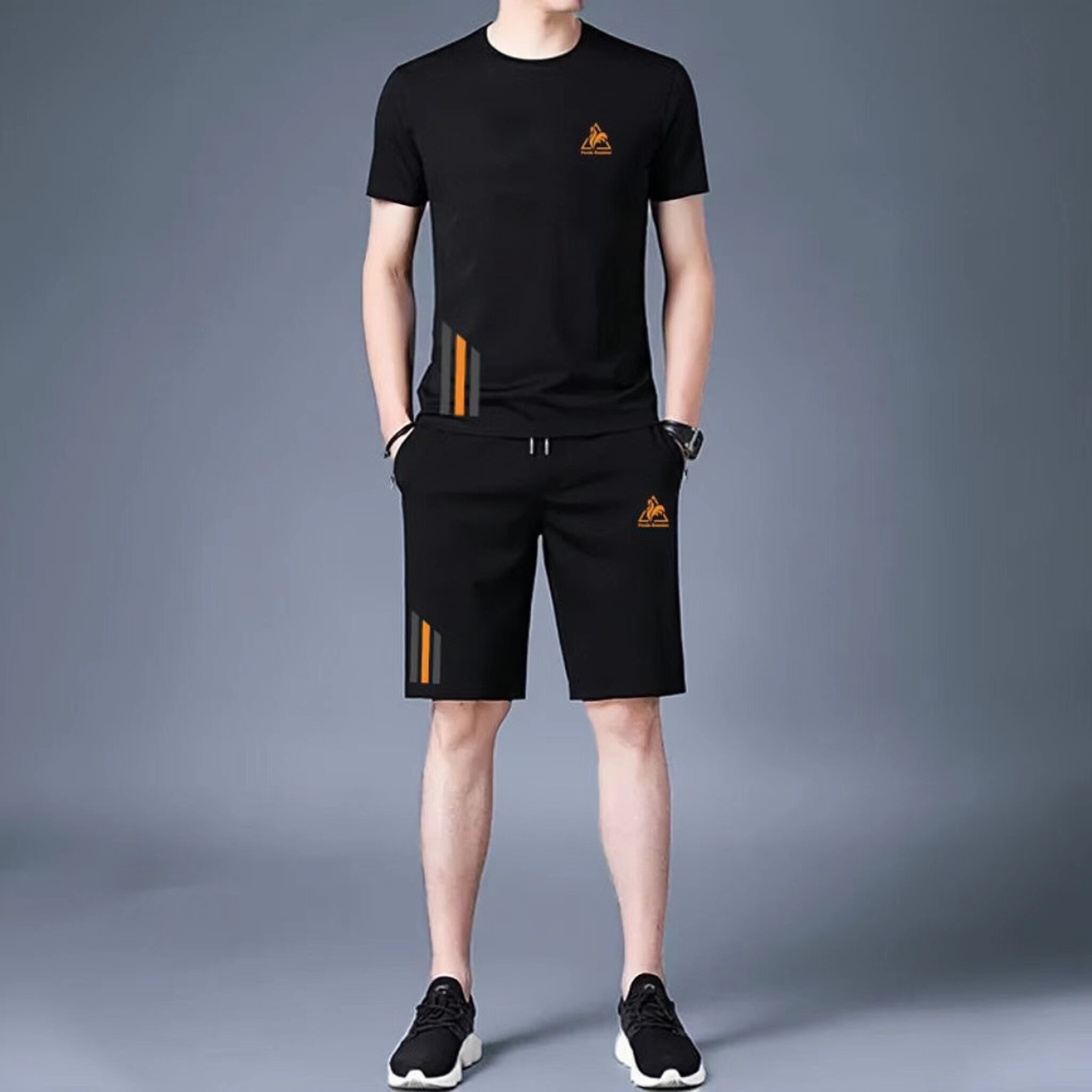 男士休闲短袖短裤冰丝速干套装