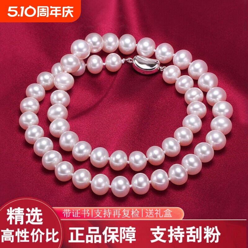 天然淡水无核珍珠项链近圆强光全珠链气质女优雅高端大气节日礼物