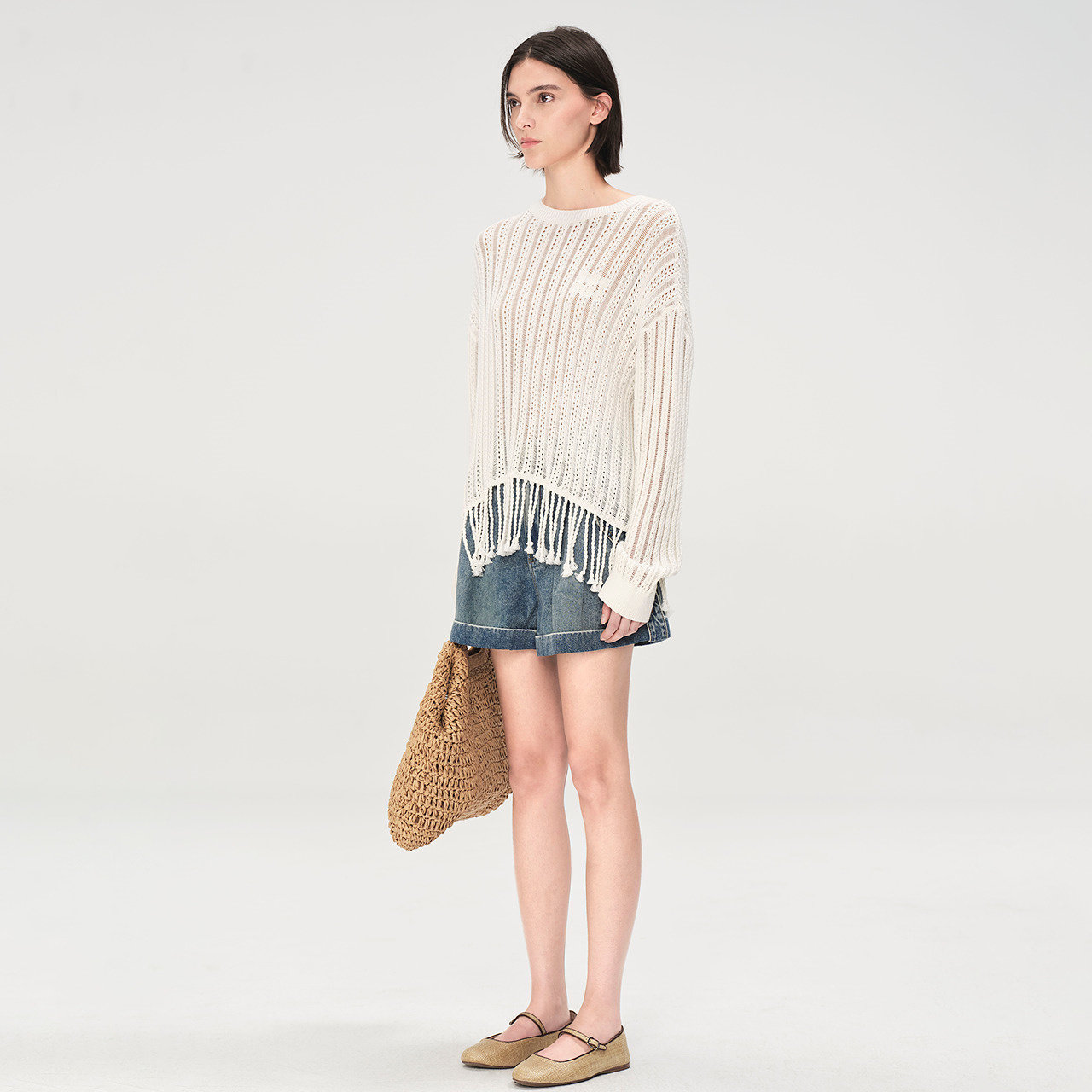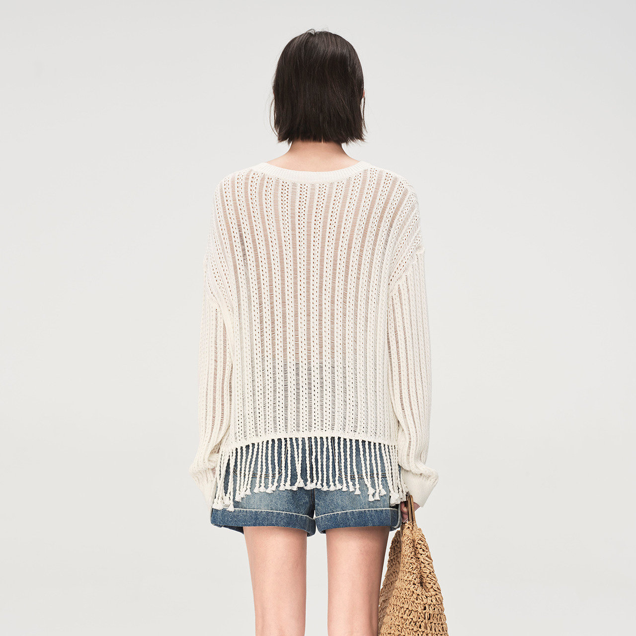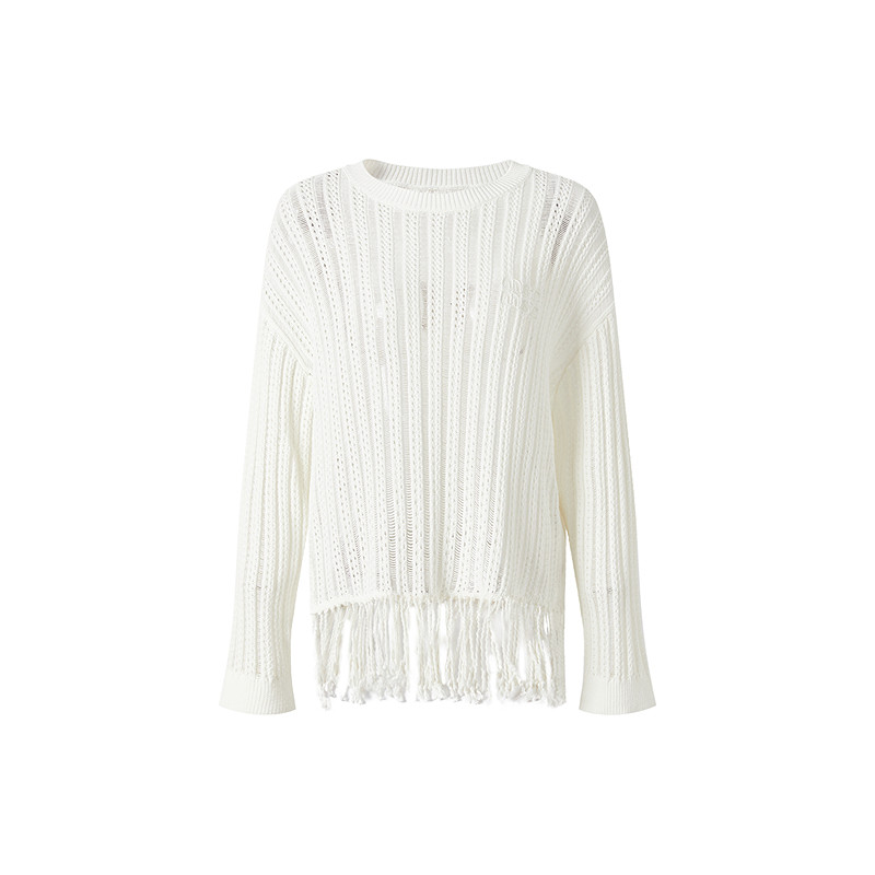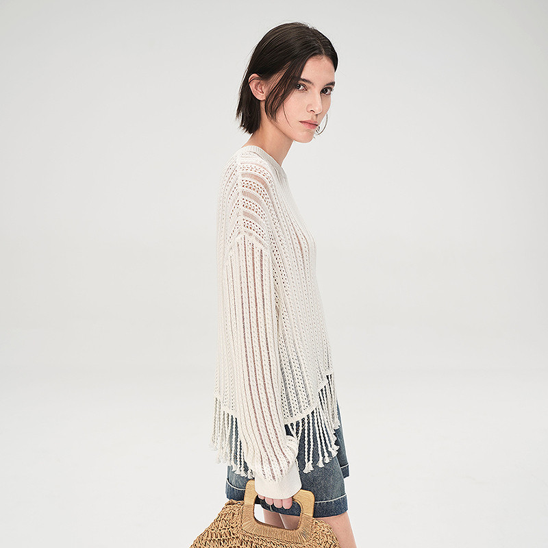 波西米亚风流苏下摆宽松针织上衣