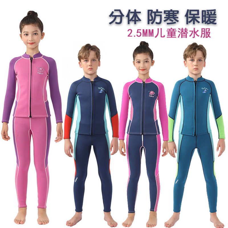 新款加厚保暖泳衣分体2.5MM儿童潜水服学生游泳训练防寒浮潜冲浪