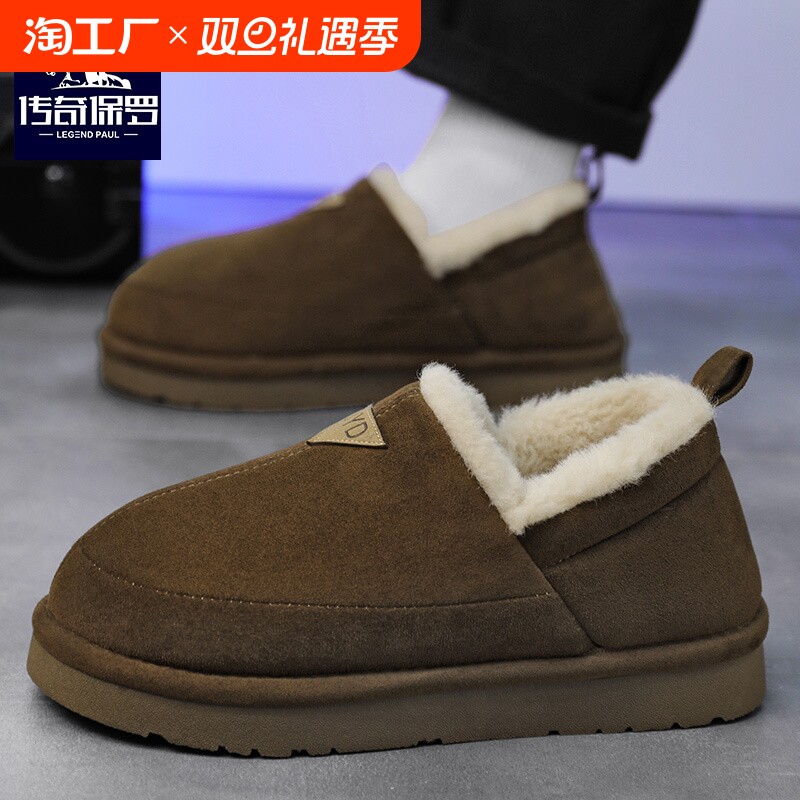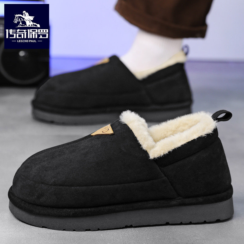 天猫天天特卖食品直营,传奇保罗男鞋冬季加绒加厚老北京棉鞋男一脚蹬软底皮毛一体面包鞋