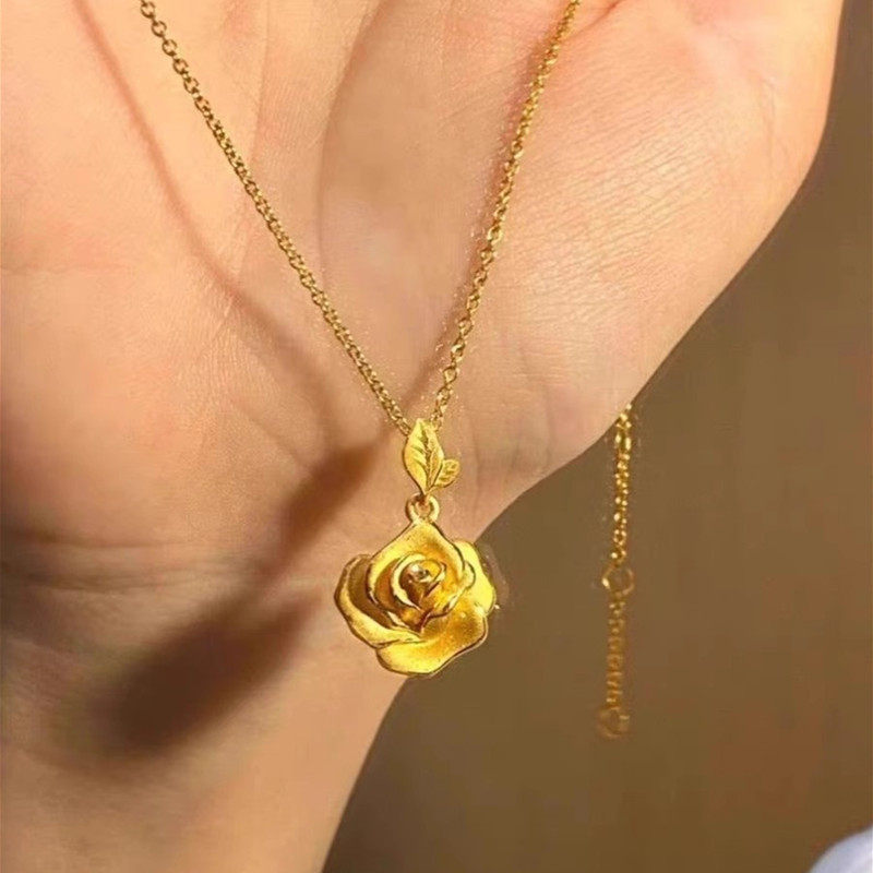 淘宝loonomo的小店,复古浪漫24K纯金玫瑰花项链新款999足金吊坠女士黄金锁骨链送女友