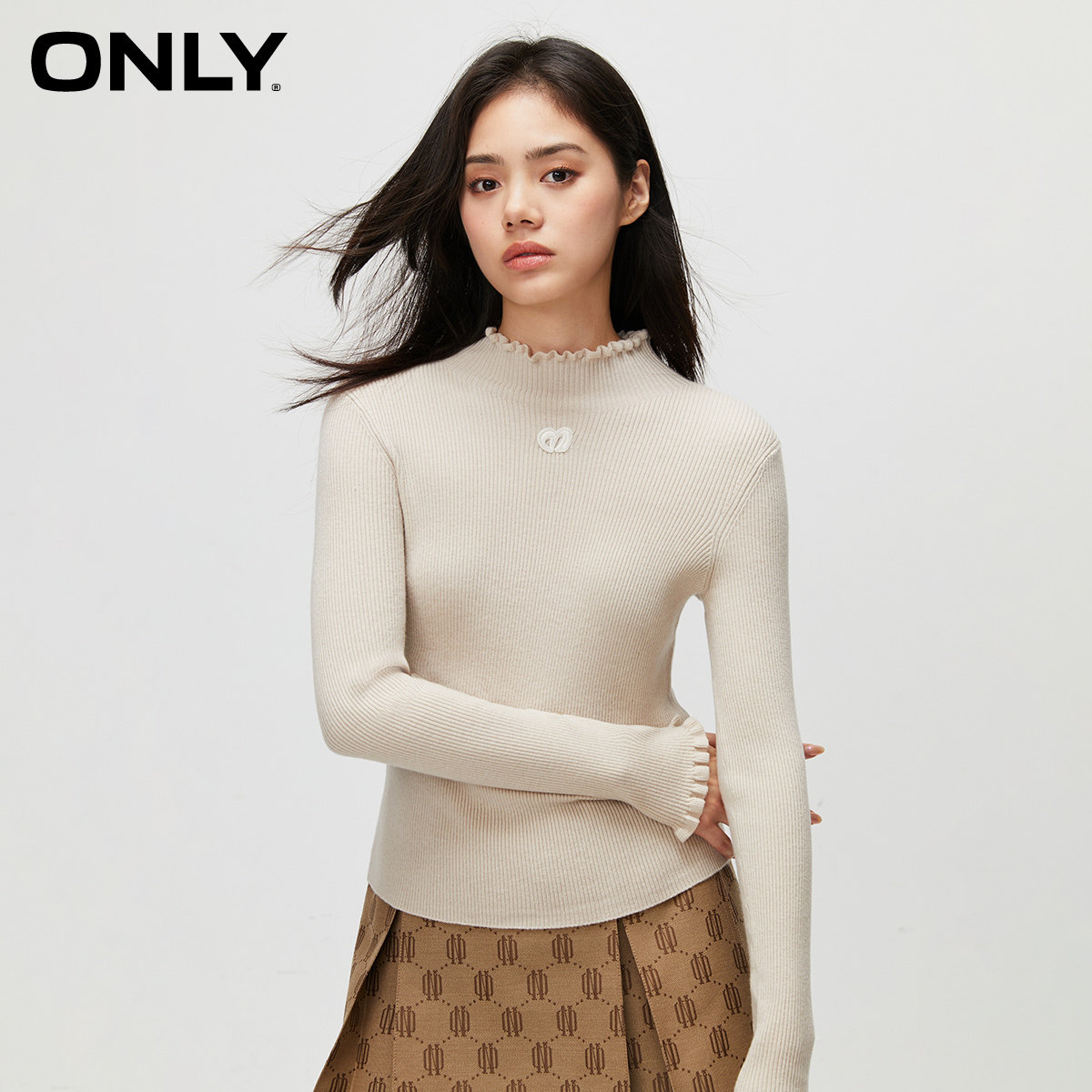 天猫ONLY官方旗舰店,ONLY修身小高领纯色刺绣针织,花边小高领 弹力竖螺纹针织 胸前贴布刺绣