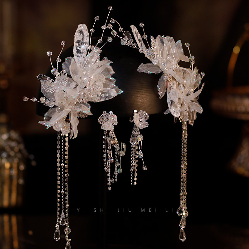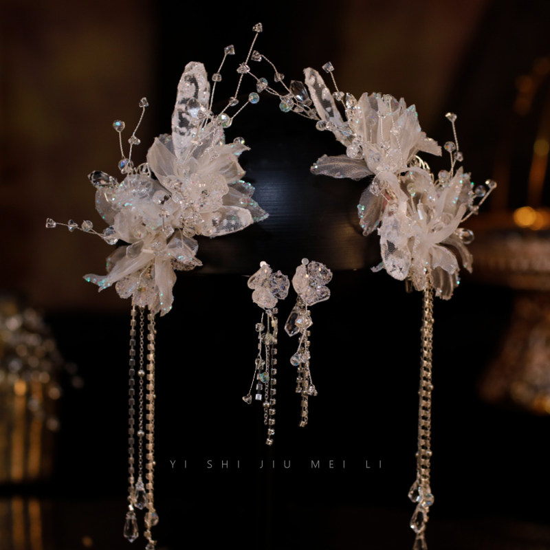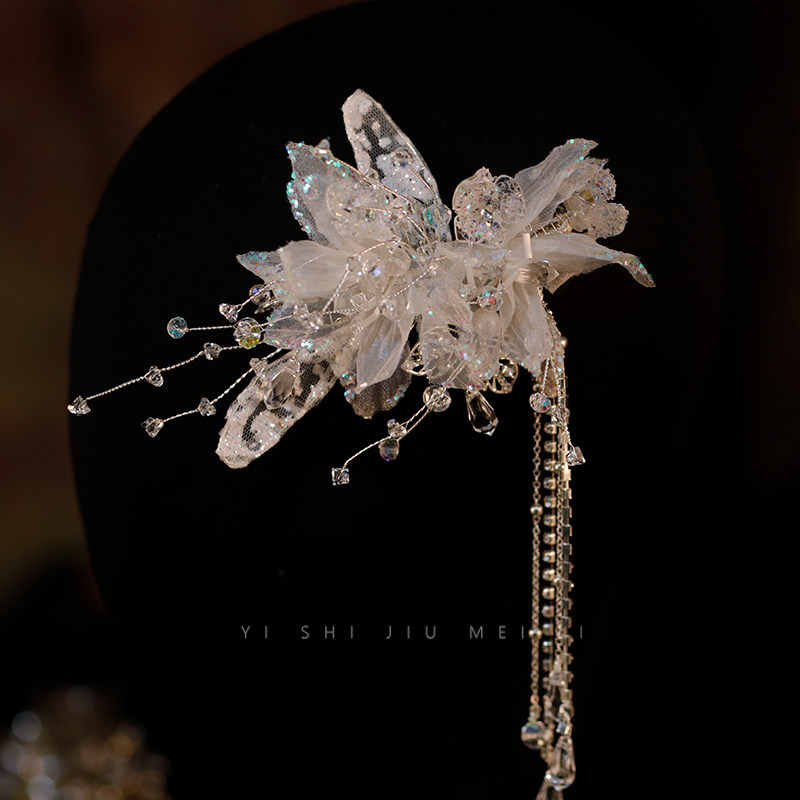 淘宝一饰9美丽,韩式新娘头饰手工蕾丝水晶发夹唯美流苏边夹婚纱礼服写真造型配饰