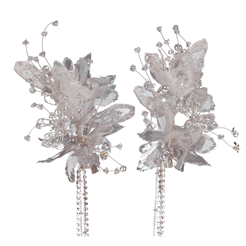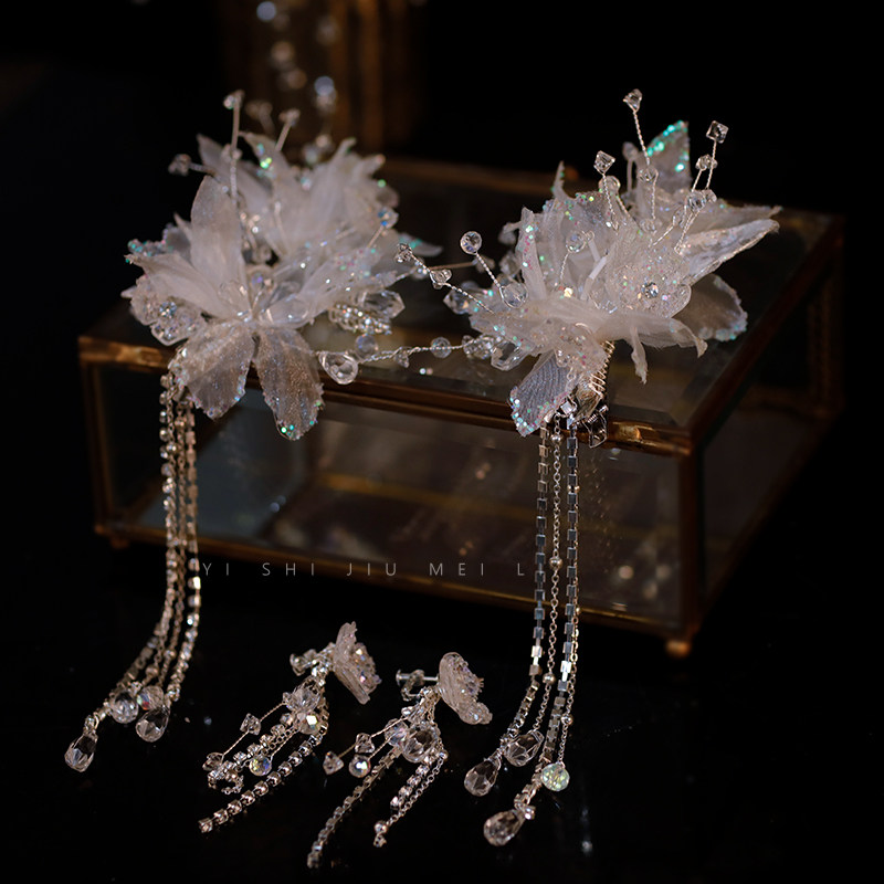 韩式新娘头饰手工蕾丝水晶发夹唯美流苏边夹婚纱礼服写真造型配饰