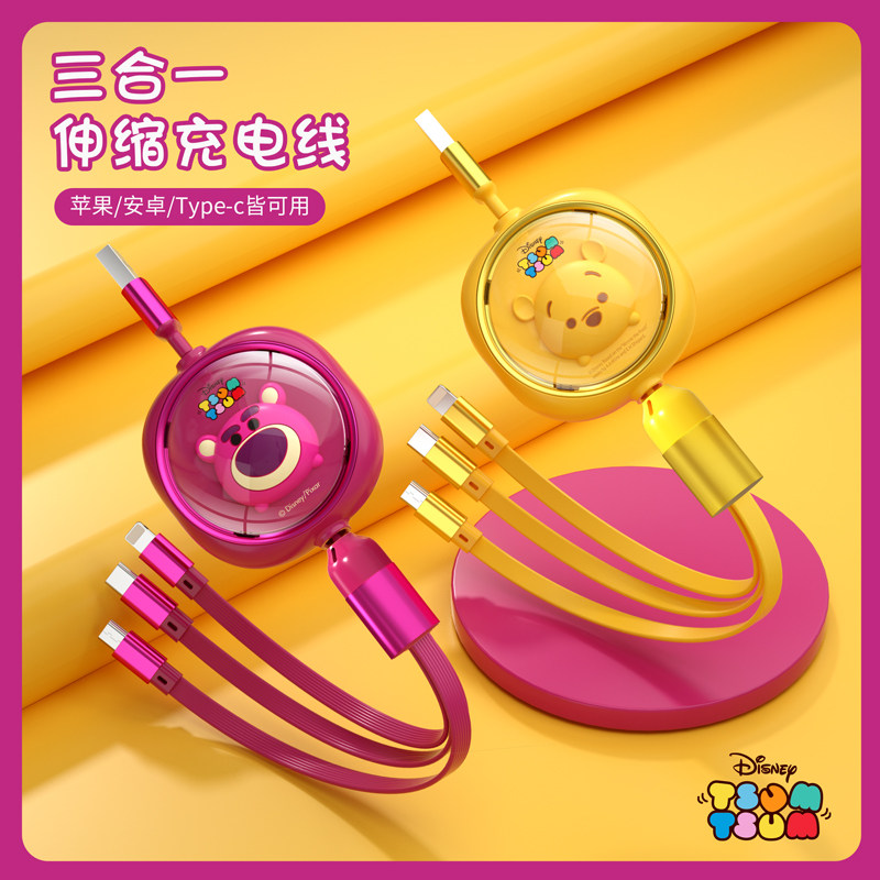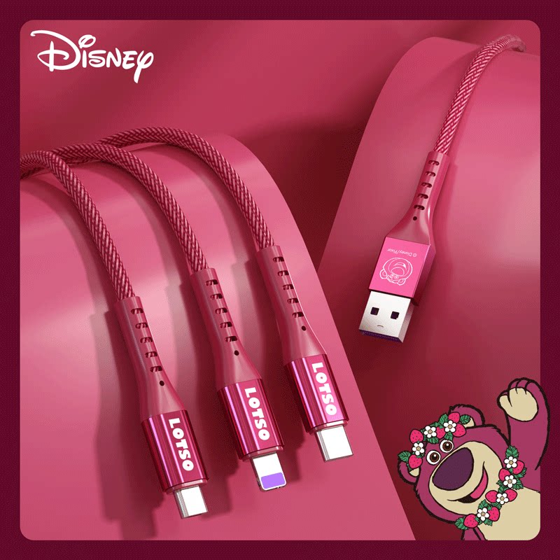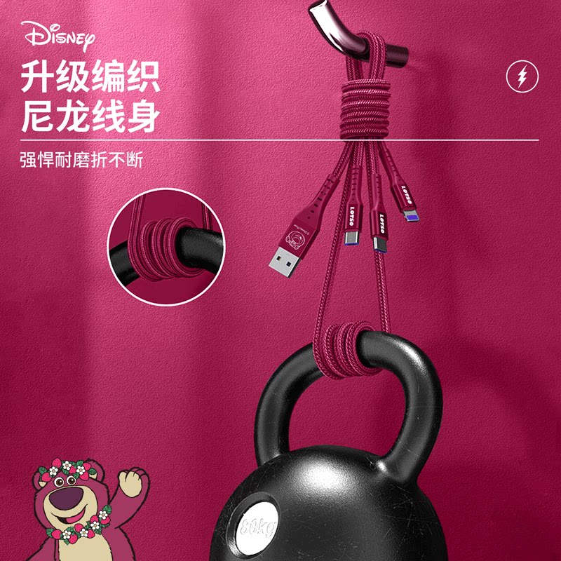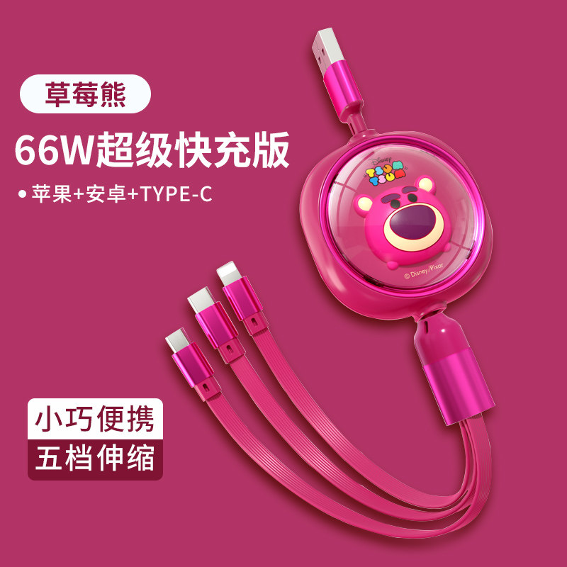 天猫walkpro旗舰店,迪士尼联名三合一草莓熊数据线iphone伸缩充电线Typec三头米奇快充一拖三适用苹果华为手机车载多功能安卓